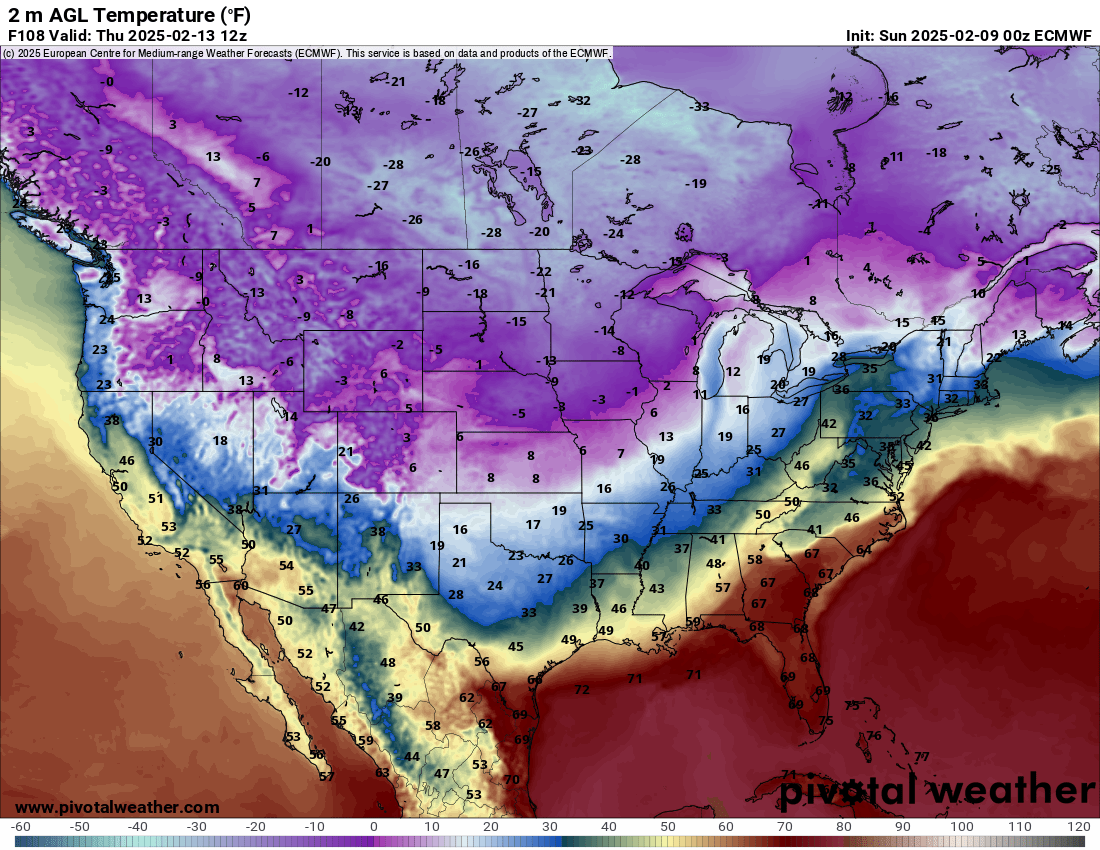 By Thursday morning, the temperature situation across the country will be very much a snapshot of winter. This is one of the coldest air masses of the season, and some areas will likely see their coldest temps of the season — but if this one doesn’t produce those it may be difficult to get lower than this the rest of the way (that’s my positive take).