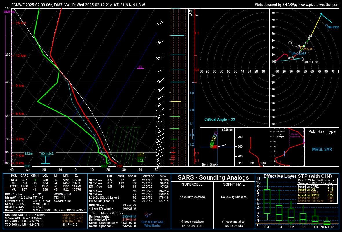 Because of that, while instability is not bad, and the overall shear (0-6km at 63kt) is good, the turning is pretty modest. This is a classic marginal severe storm environment in the southeast, with the helicity values being highly suggestive of pretty unorganized storm activity.