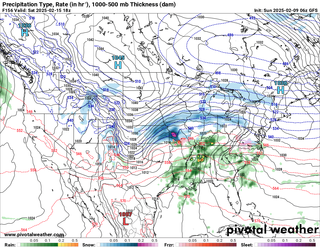 The first storm system will emerge out of the Southwest on Tuesday into Wednesday with thunderstorms to the south and snow to the north. A strong cold front will also dive south, with some of the coldest air of the winter expected. This is dependent somewhat on the snowpack that emerges to the north, but lows in the teens as far south as the Red River are possible.