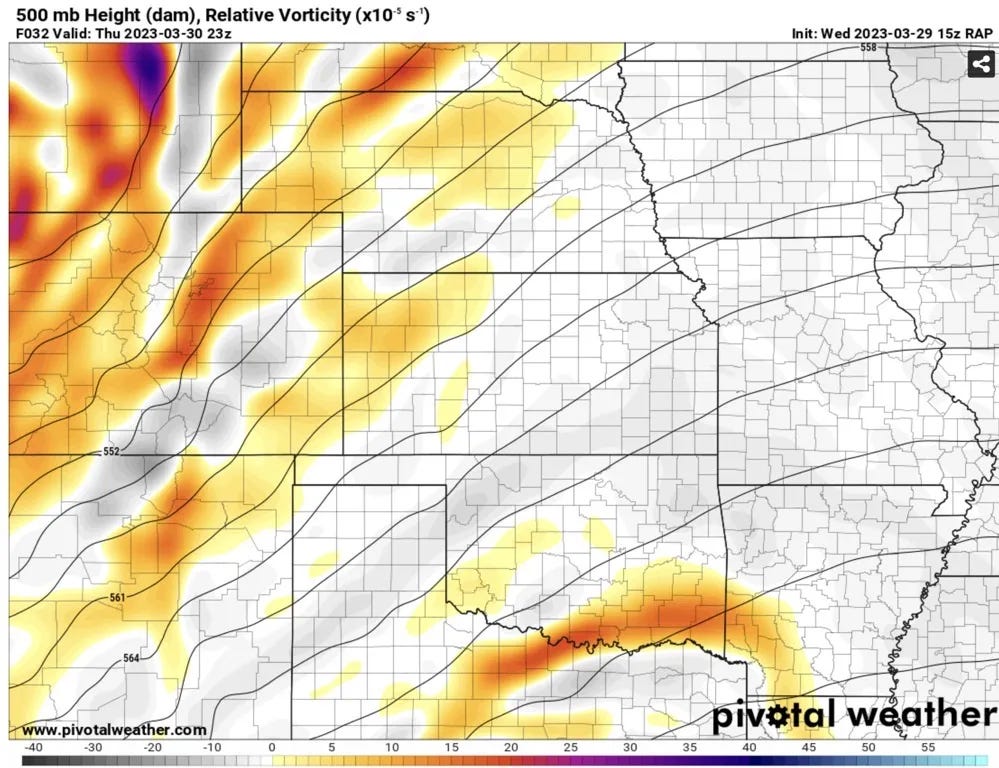 I’m writing this newsletter because I think it is always good practice to talk about when drylines set up but don’t fire robust storms. Tomorrow is one of those days (in all likelihood). If a storm were to fire in Kansas/Oklahoma/North Texas it would likely be a pretty tiny storm but might post a hail threat. Let’s dive in quickly.