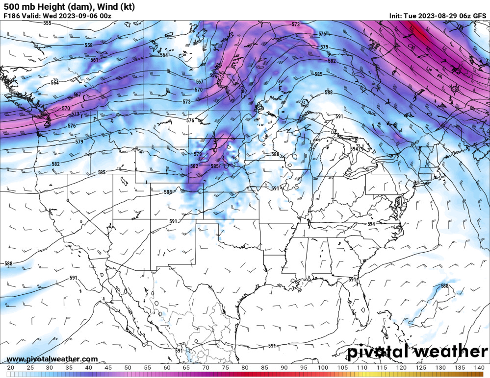 Models are in generally good agreement that we won’t see much energy dipping south and out onto the Plains through the first third of September. The ridging type of pattern that’s set in pretty firmly over the last several weeks should persist and keep summer vibes going well into the month.