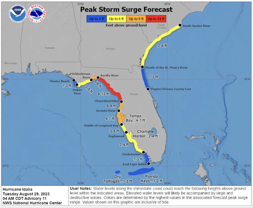 The track of Idalia has it making landfall somewhere in the Big Bend region of Florida. This area is pretty susceptible to coastal flooding but, thankfully, isn’t nearly as densely populated as other portions of the Florida coast.