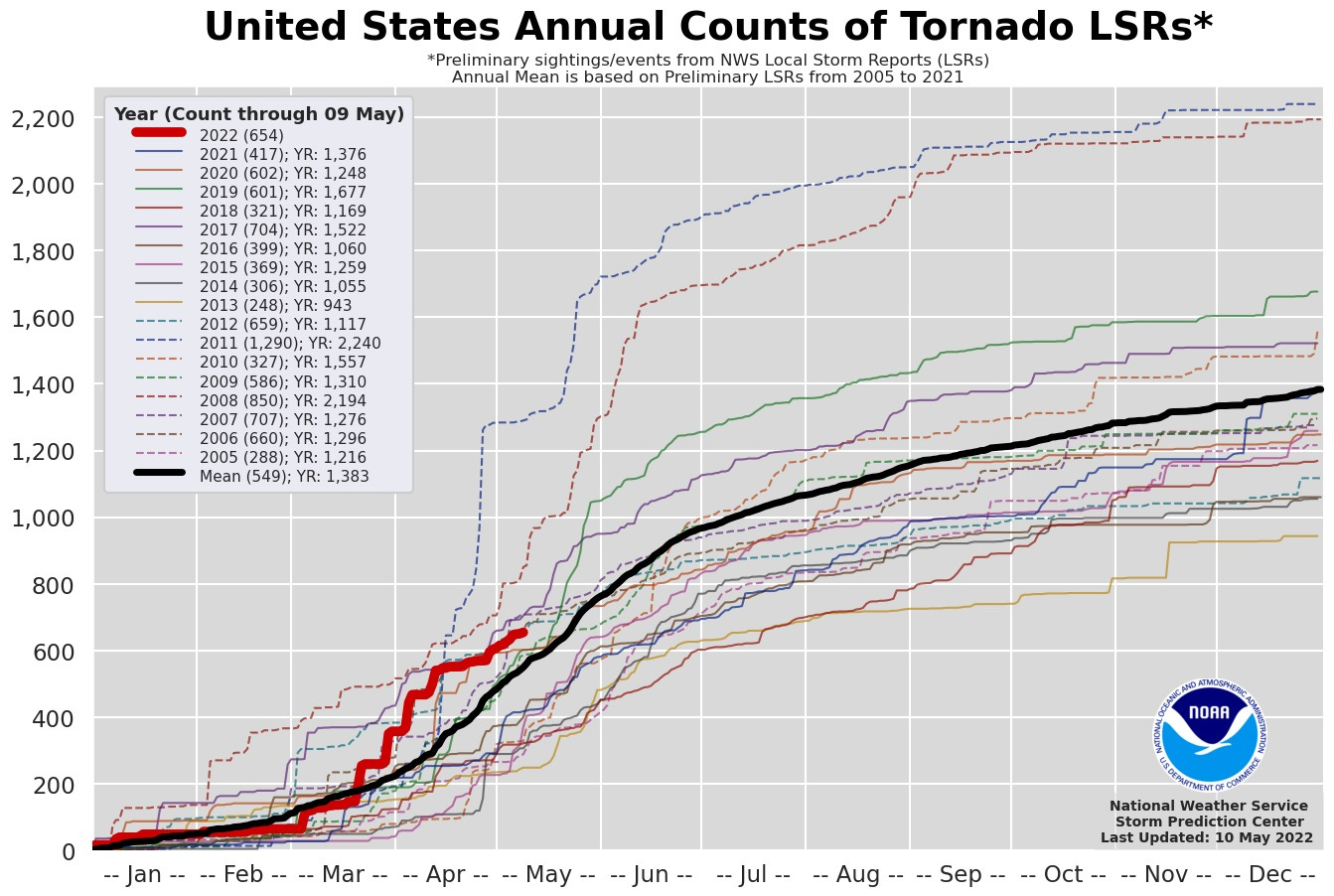 Phew! That run from the end of April into Early May felt relentless in terms of severe weather threats and tornadoes — even though we thankfully saw the overall number of reports stay on the lower side despite the high-end outlooks issued several days. This entire run has resulted in us entering May above normal for tornadoes on the year for the first time in awhile.