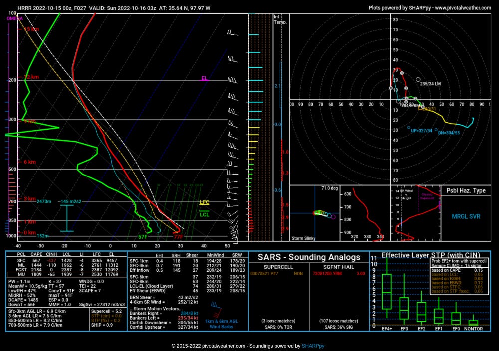 The near-surface boundary should be pretty stable due to boundary layer cooling into the night, but ample 0-6km shear and cloud-layer shear should promote hail growth in the strongest updrafts.