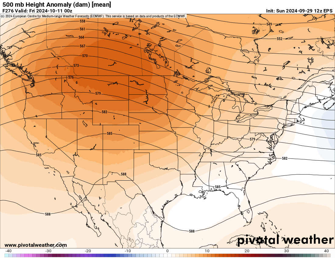 The overall pattern for the first half of the month looks to be dominated by a large western U.S. ridge. A glance at the ensembles shows this pretty clearly: