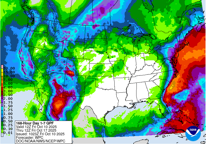 The WPC is fairly bullish, forecasting rainfall totals over the Southwest, with some additional storm activity stretching into the Plains. Overall, I think we’ll need another system to possibly reset the pattern in the Gulf to draw a richer/more widespread warm sector north.