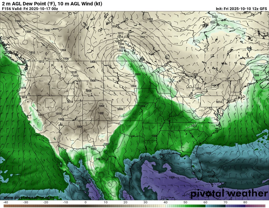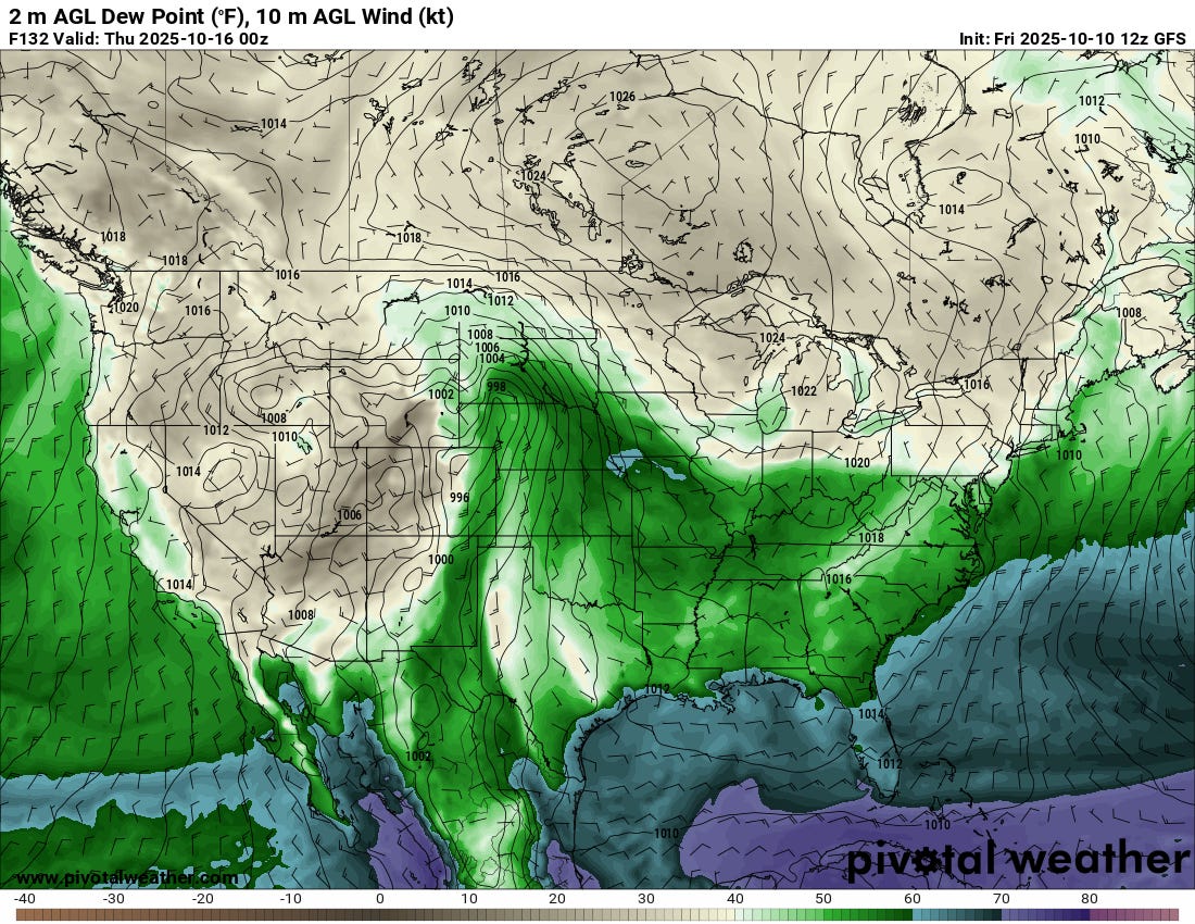 As a strong trough approaches the middle of the country next week, unsettled weather will be on the menu. However, that weak low in the Gulf of Mexico may portend serious issues for moisture quality.