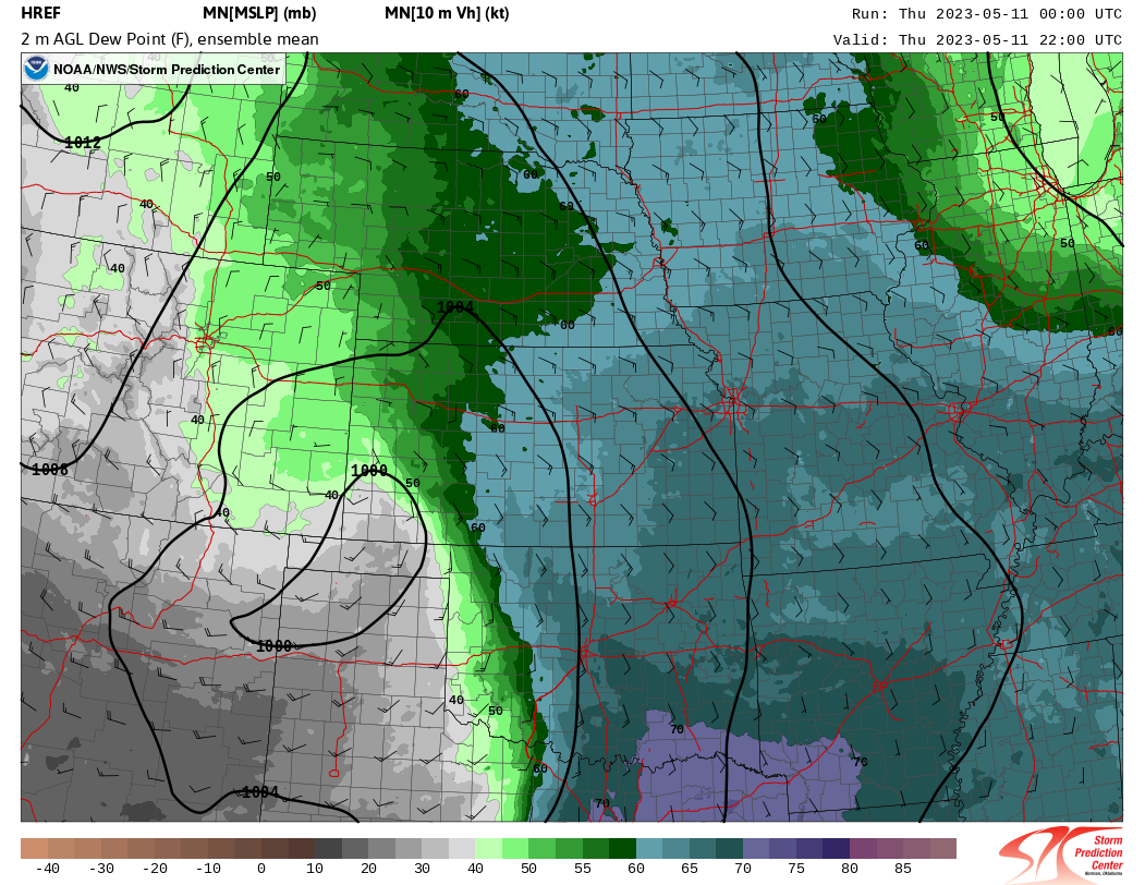 Rich dewpoints running from the low to mid 60s all the way to near 70 will be in place across the Southern and Central Plains.