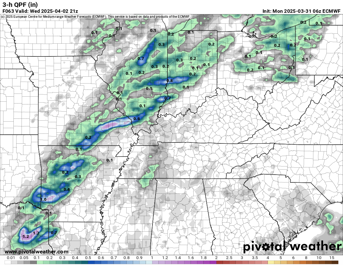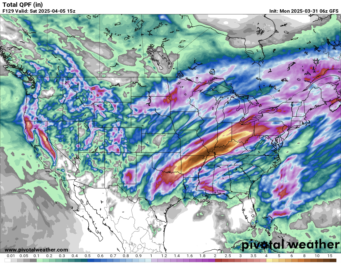 Models have the look of an almost trailing/fading risk of severe storms on Thursday and then a rainout/washout mostly on Friday into Saturday. In fact, the overall rain totals for this upcoming system will be very beneficial towards drought reduction in the heart of tornado season.