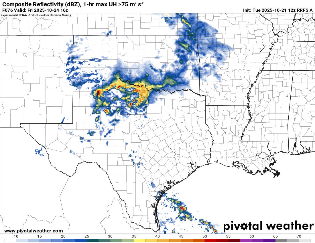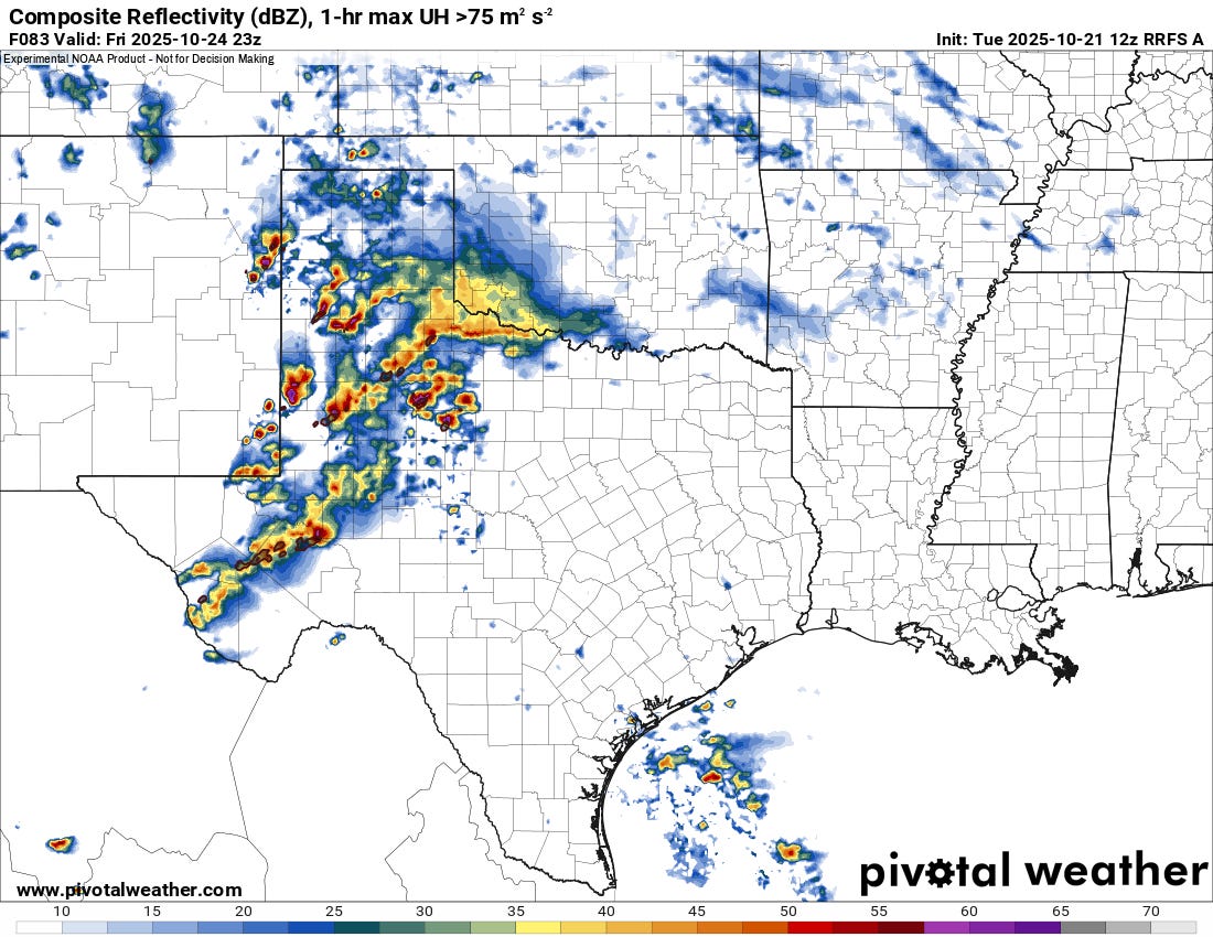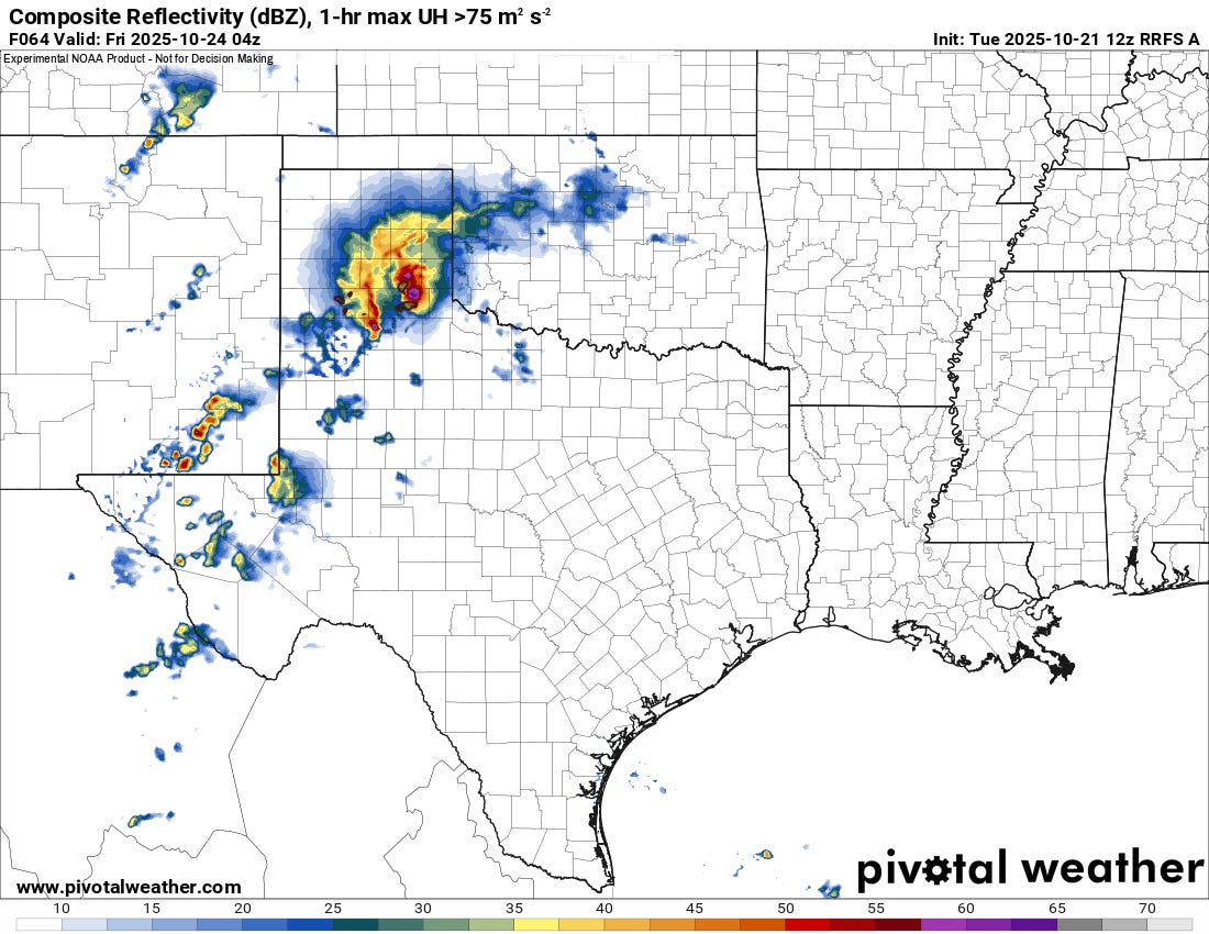 The RRFS does produce what I would assume are severe storms over the Texas Panhandle on Thursday, with solid flow but meager moisture and instability. Still, this would be sufficient for a severe weather risk to be introduced if later CAM solutions maintain this.